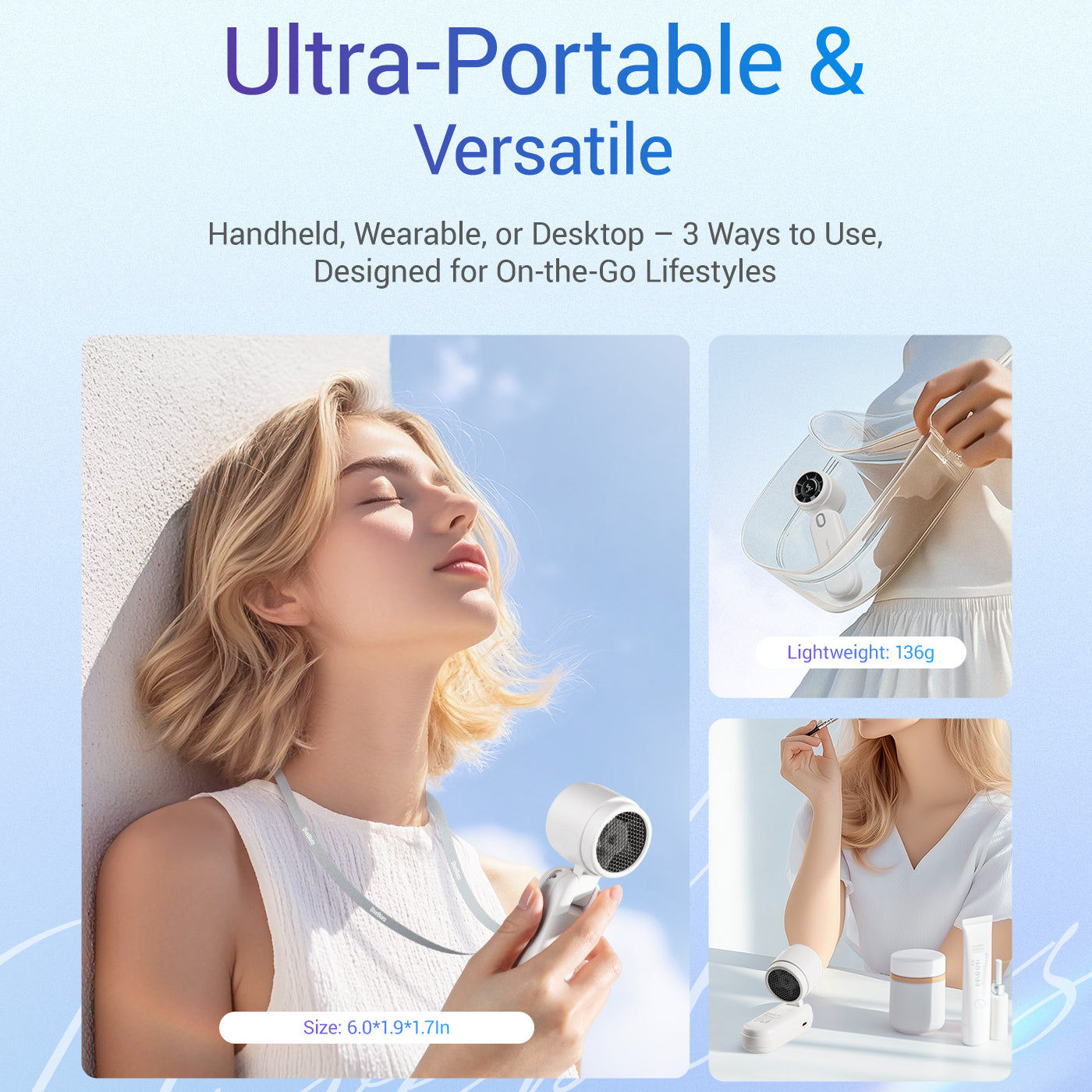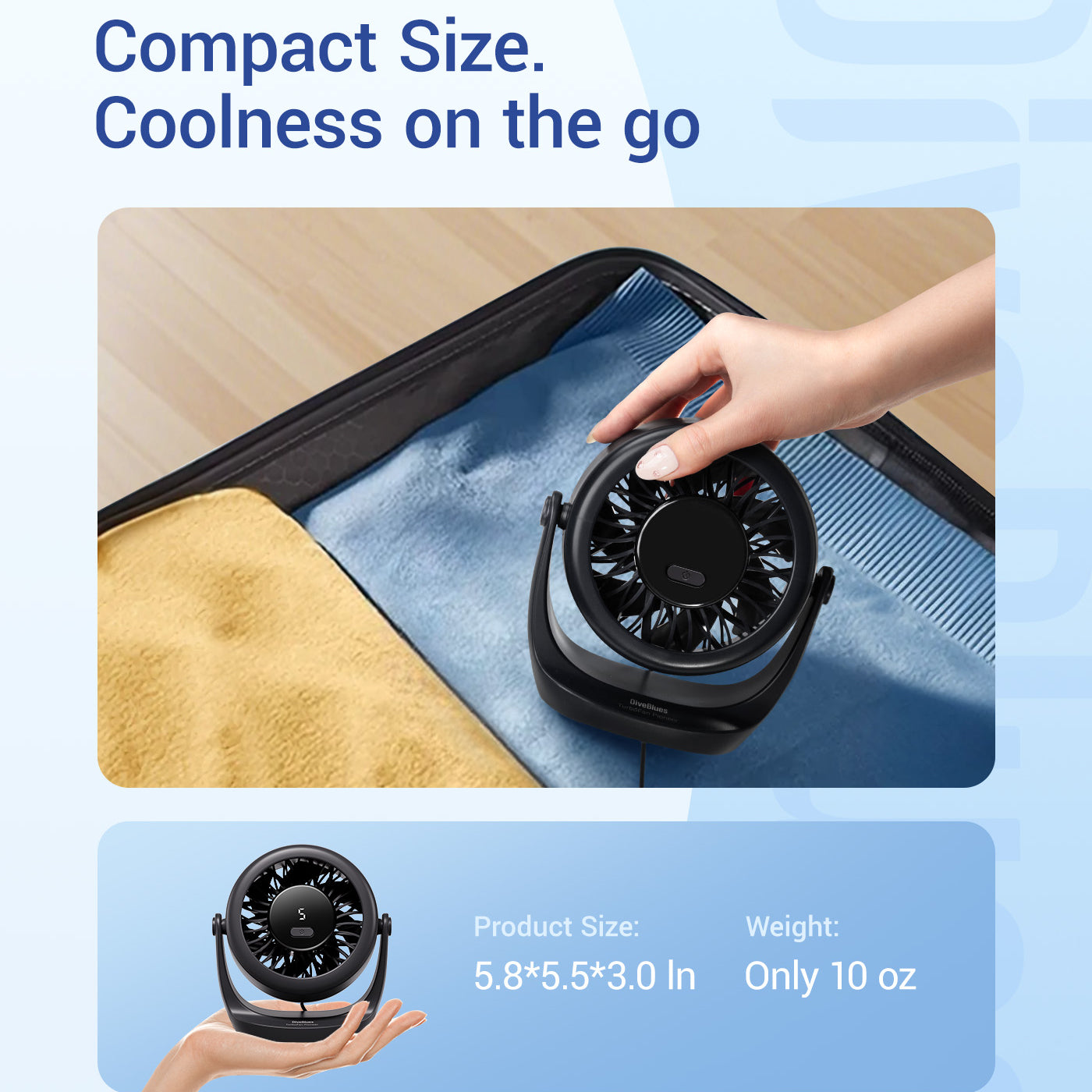 Lightweight and powerful, our portable high-speed fan delivers instant cooling with adjustable speeds and long battery life—perfect for travel, commuting, and outdoor use!