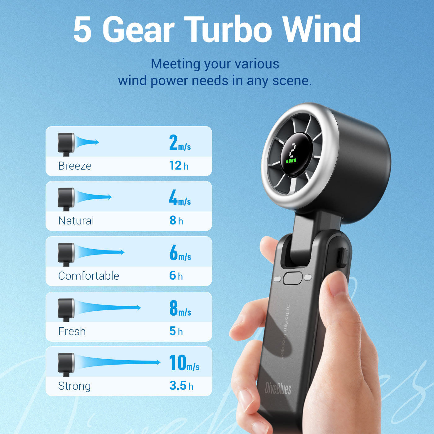 Diveblues Portable Turbo Handheld Fan D5022