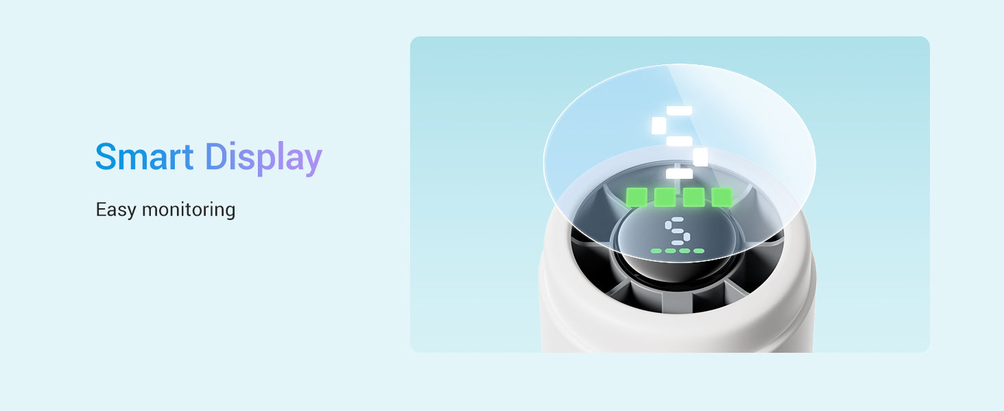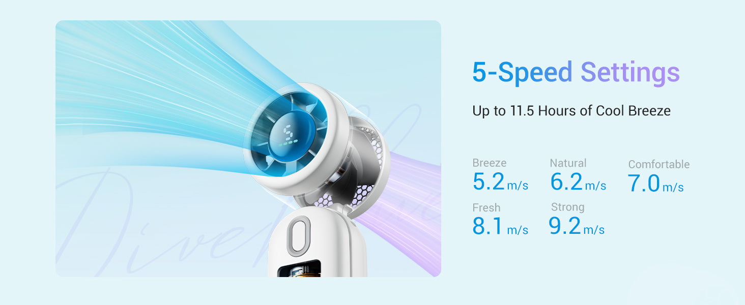 Choose from 5 adjustable speeds. The LED display shows wind speed and battery life 🔋, keeping you in control.