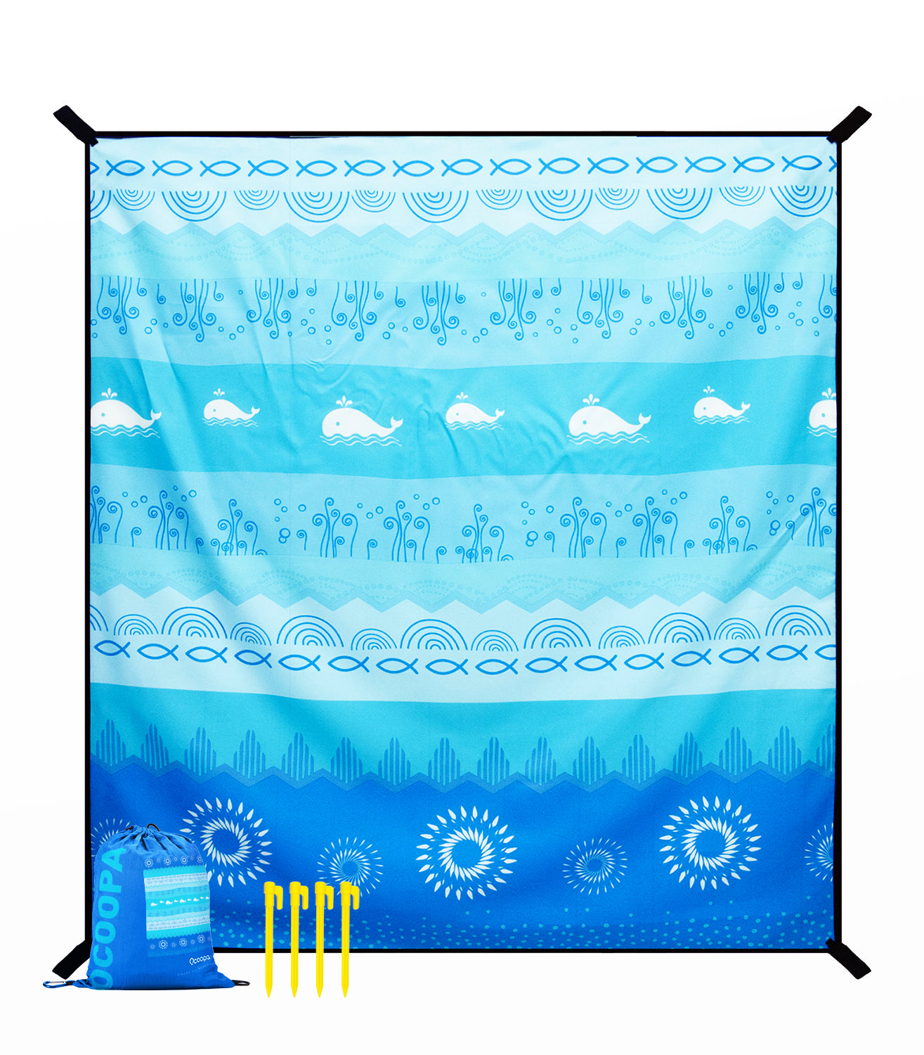 - Amazing Size, this beach blanket is 83x 79inches, you can comfortably laying on it with your family or friends. And it's ultra-compact when it's folded in the carry bag. Save more space when you pack up your beach essential.