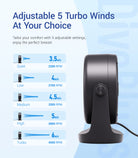 5-Speed Adjustable Wind – Customize your breeze from 3.5m/s to 6m/s for any setting—home, office, gym, or outdoor use.