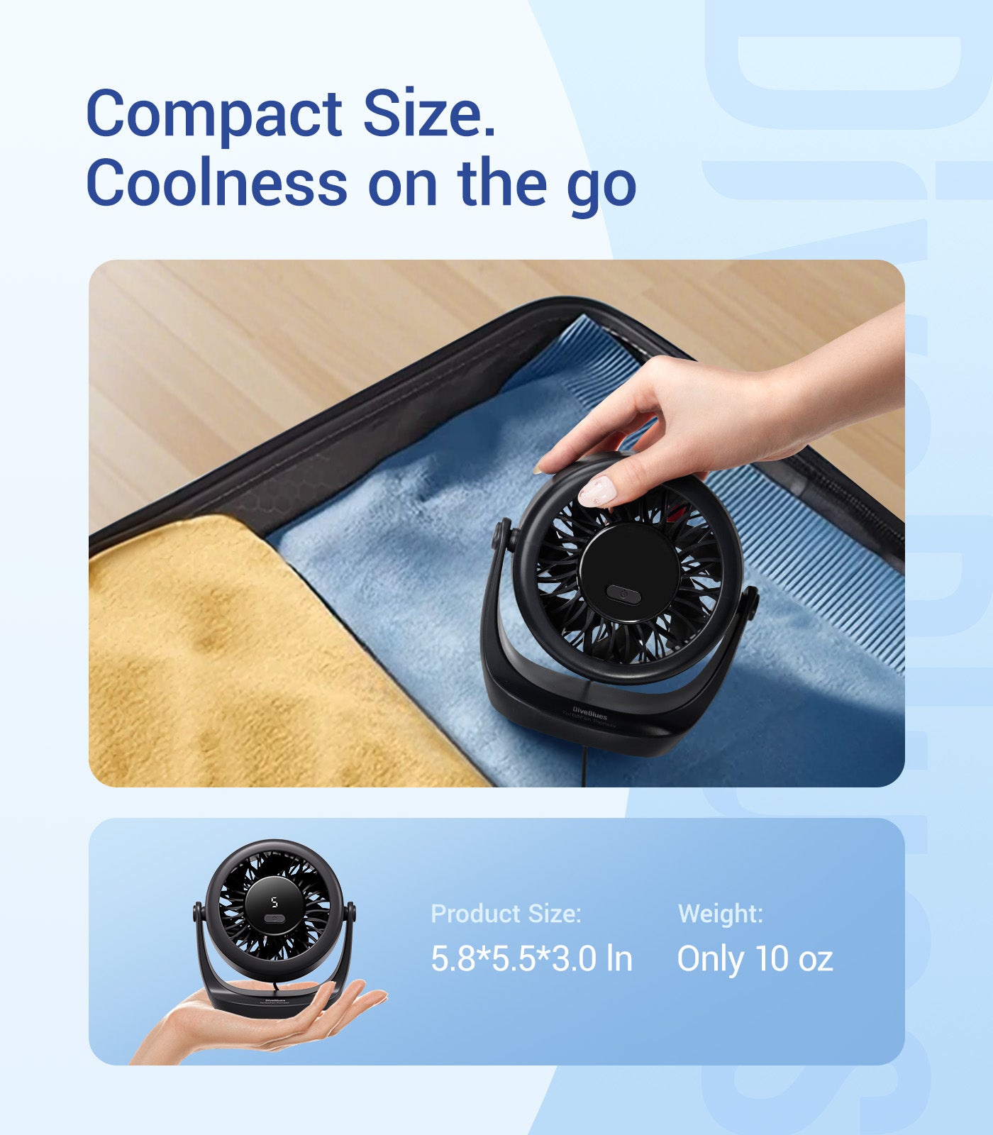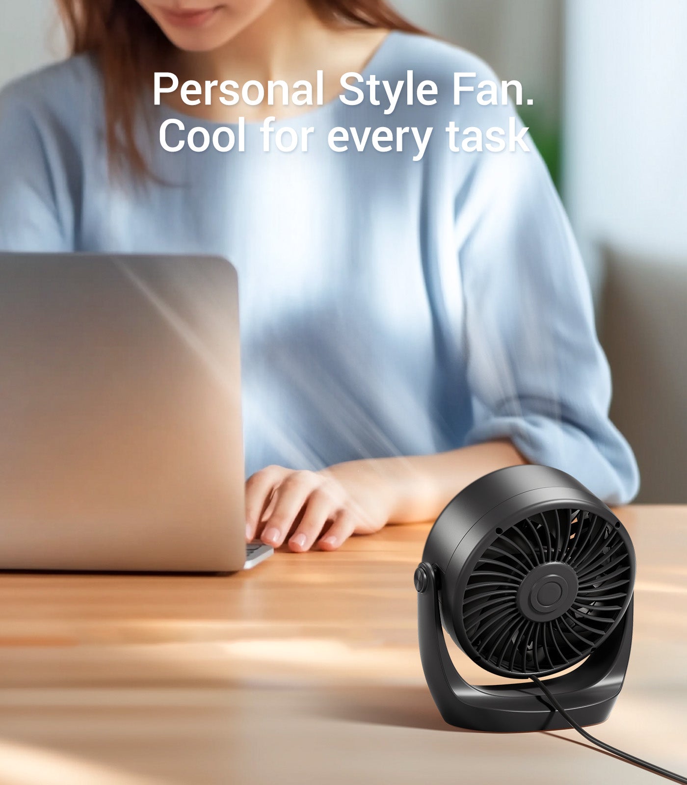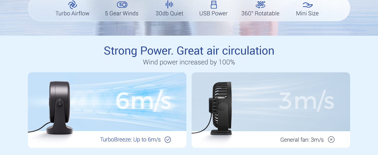 360° Adjustable & Compact – Direct airflow anywhere with a lightweight, 10 oz design ideal for desks, nightstands, and travel.