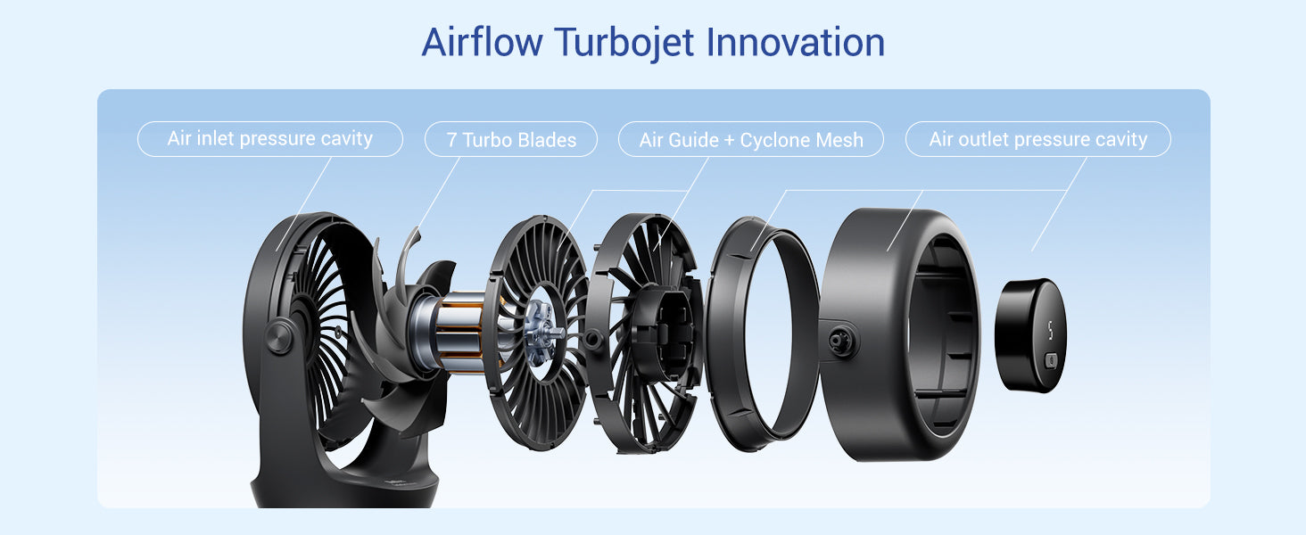 Turbocharged Cooling – Enjoy 100% stronger airflow with up to 6m/s wind speed, instantly cooling your space—perfect for offices, bedrooms, and kitchens.