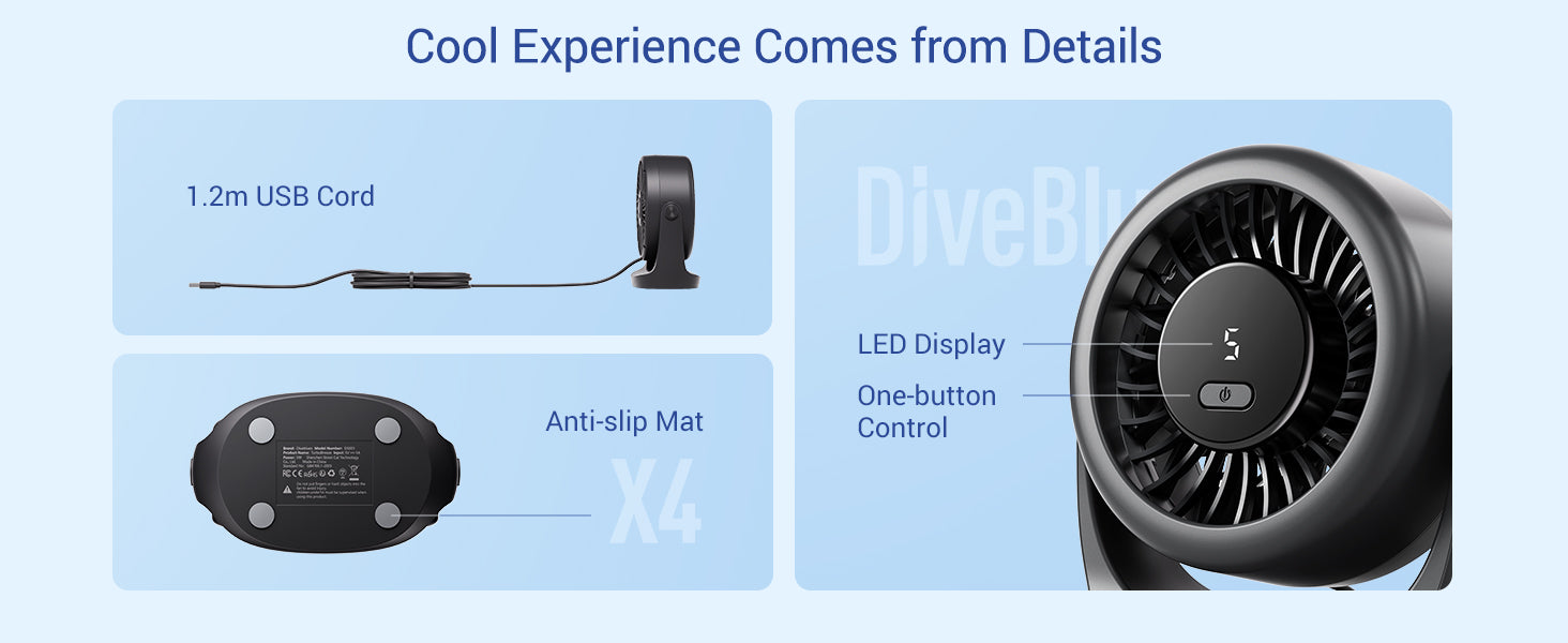 Diveblues USB Desk Turbo Fan D5001
