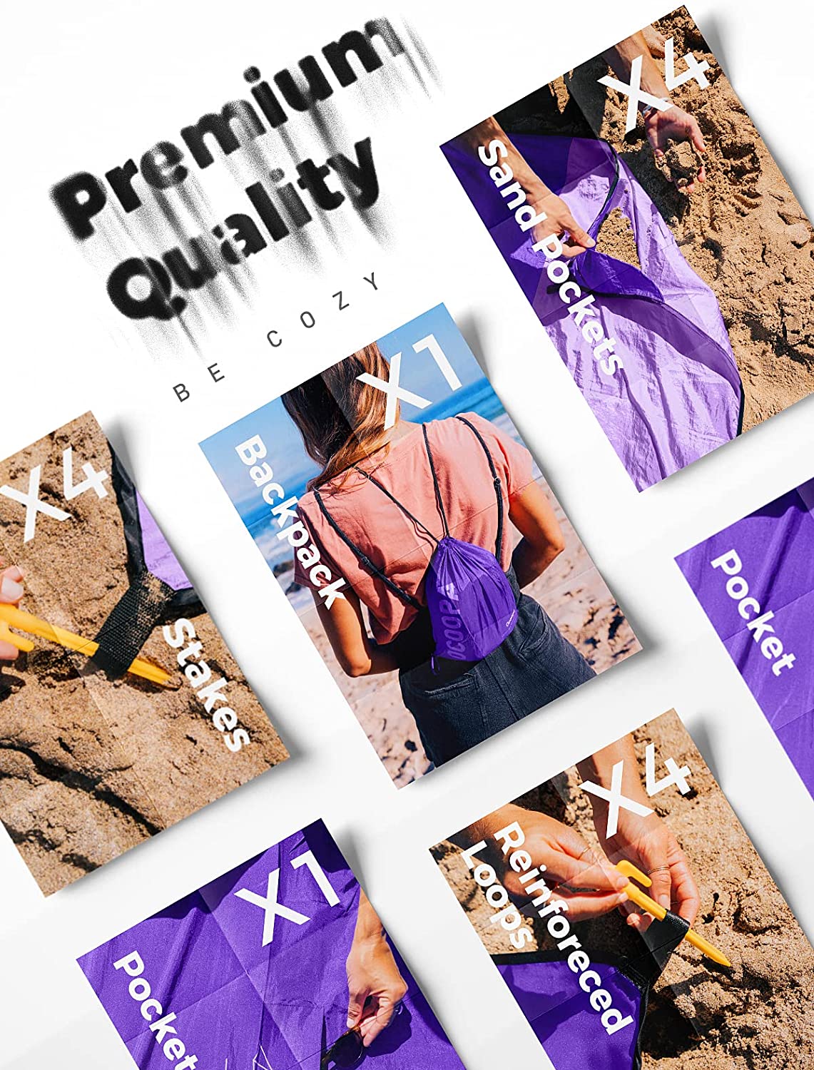 • 🎊 All Accessories Packed. Comes with 4 ABS Plastic stakes and reinforced anchor loops, and 4 corner sand pockets to keep the blanket grounded on windy days. What's more, a carrying bag is also included.