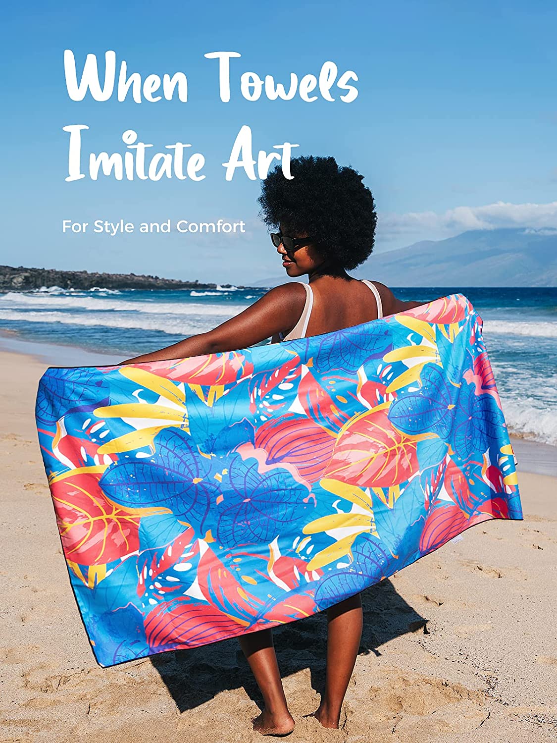 • ☀️SAND FREE BEACH TOWEL: Our beach towels are made with microfiber fabric designed to repel sand. When not in use, you can easily and quickly shake off sand. The result? Sand-free, comfier and simply better beach days.
